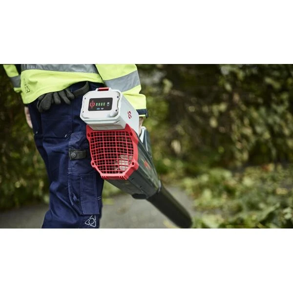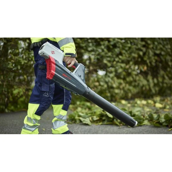 Verwijder snel en moeiteloos bladeren, grasresten, zand, vuil en afval van trottoirs en oppervlakken met Cramer’s 82V batterij aangedreven bladblazer.