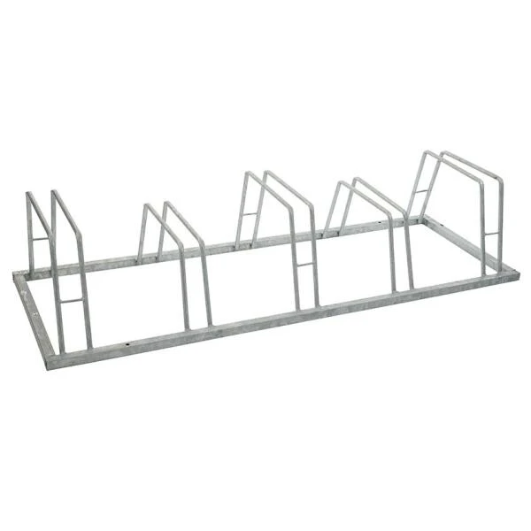 In dit gegalvaniseerde fietsenrek kan je tot 5 fietsen zetten. Door de verschillende hoogtes kan je de fietsen makkelijk in het rek zetten en er weer uit halen.