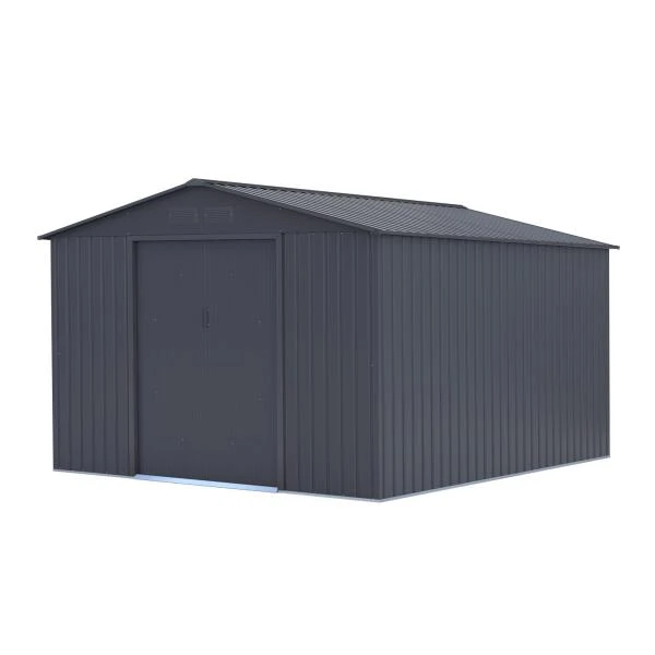 Een kwalitatief metalen tuinhuis van Sinolily met zadeldak en dubbele schuifdeur. Makkelijk te monteren en gratis aan huis geleverd.