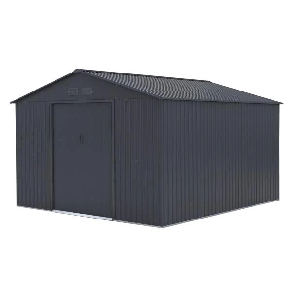 Het Archer tuinhuis van Sinolily is voorzien van een dubbele schuifdeur aan de voorzijde. De wanden, alsook het dak zijn opgebouwd uit roestvrij staal, afgewerkt met een kwalitatieve coating in antraciet. Dit maakt het metalen tuinhuis onderhoudsarm. Het zadeldak helt licht over waardoor het niet binnen regent.