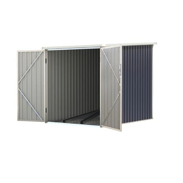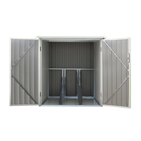 Een metalen fietsenberging van het merk Sinolily, geschikt voor het droog en veilig opbergen van vier fietsen. Makkelijk te monteren en voorzien van een slot.