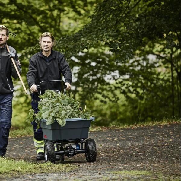 Wanneer je grote of zwaardere zaken wil verplaatsen, kiest je voor deze stabiele en eenvoudig te gebruiken CRAMER 82V accu aangedreven kruiwagen. Hij verlaagt jouw fysieke belasting, vooral op oneffen terrein en op hellingen dankzij het wielremsysteem en de pivoterende achterwielen.